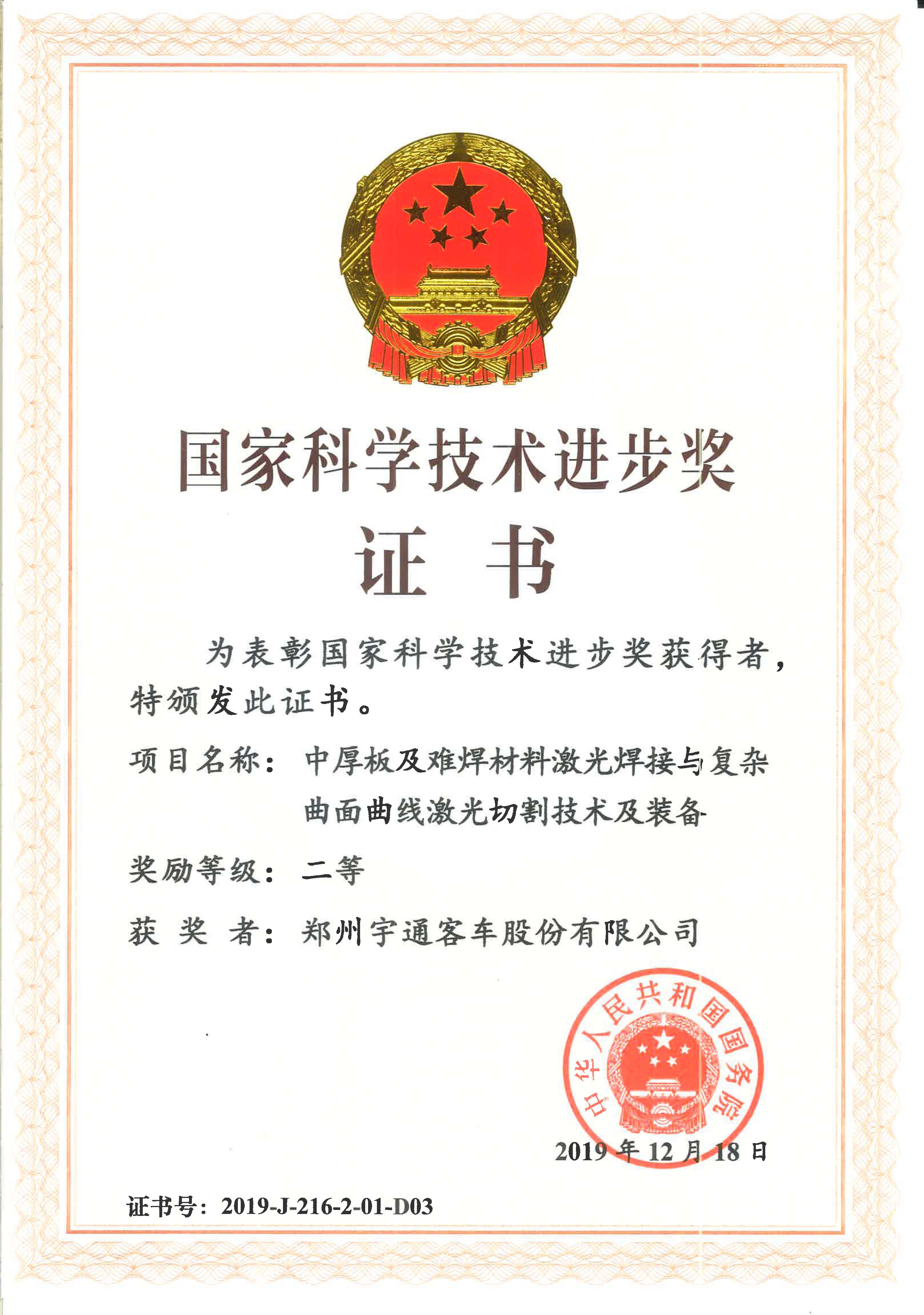 2019年“中厚板及难焊材料激光焊接与复杂曲面曲线激光切割技术及装备”荣获"国家科技进步二等奖"